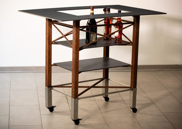 Die neueste Interpretation meines Bartisches, entworfen 1996, diese Version aus Roststahl und Edelstahl gebaut 2022.