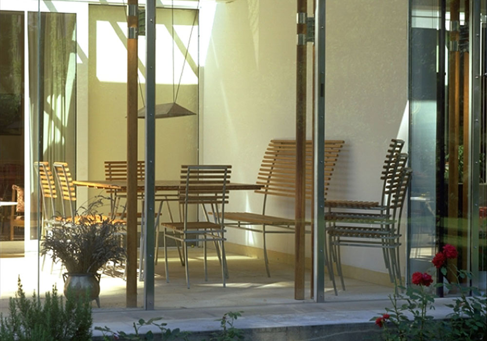 Der einfachste Gartentisch, drei Pfosten mit Tischplatte – es muss ja keine Glasplatte sein!