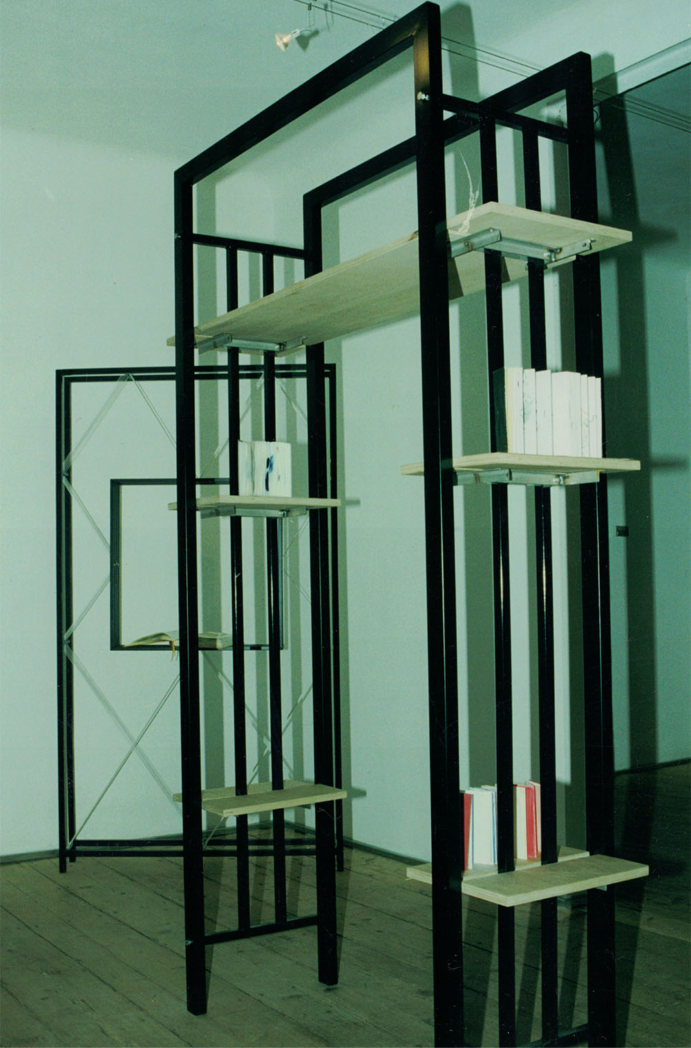 Eine unserer Ausstellungen im Haus Wittgenstein, Wien. Weinregal Bordo und Vitrine Gabriel (für Galerie Hofstätter)